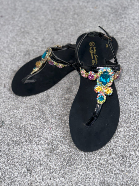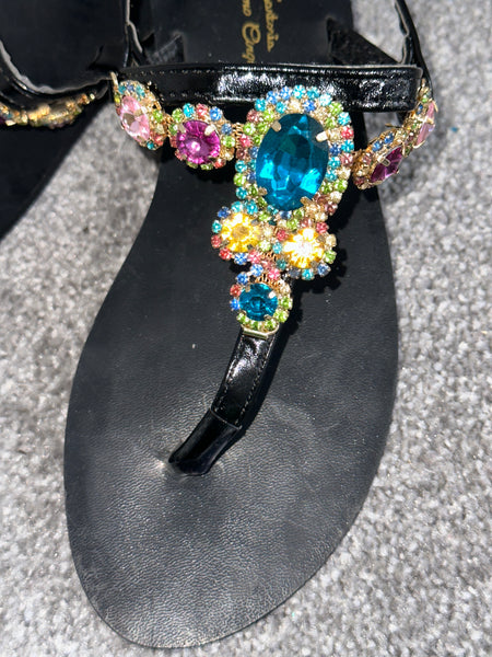 Black Multicoloured Embellished Sandals