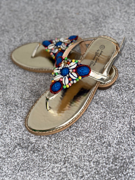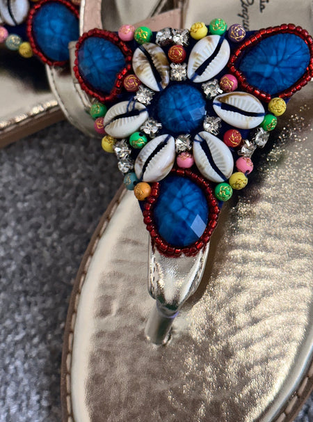 Blue Multicoloured Embellished Sandals