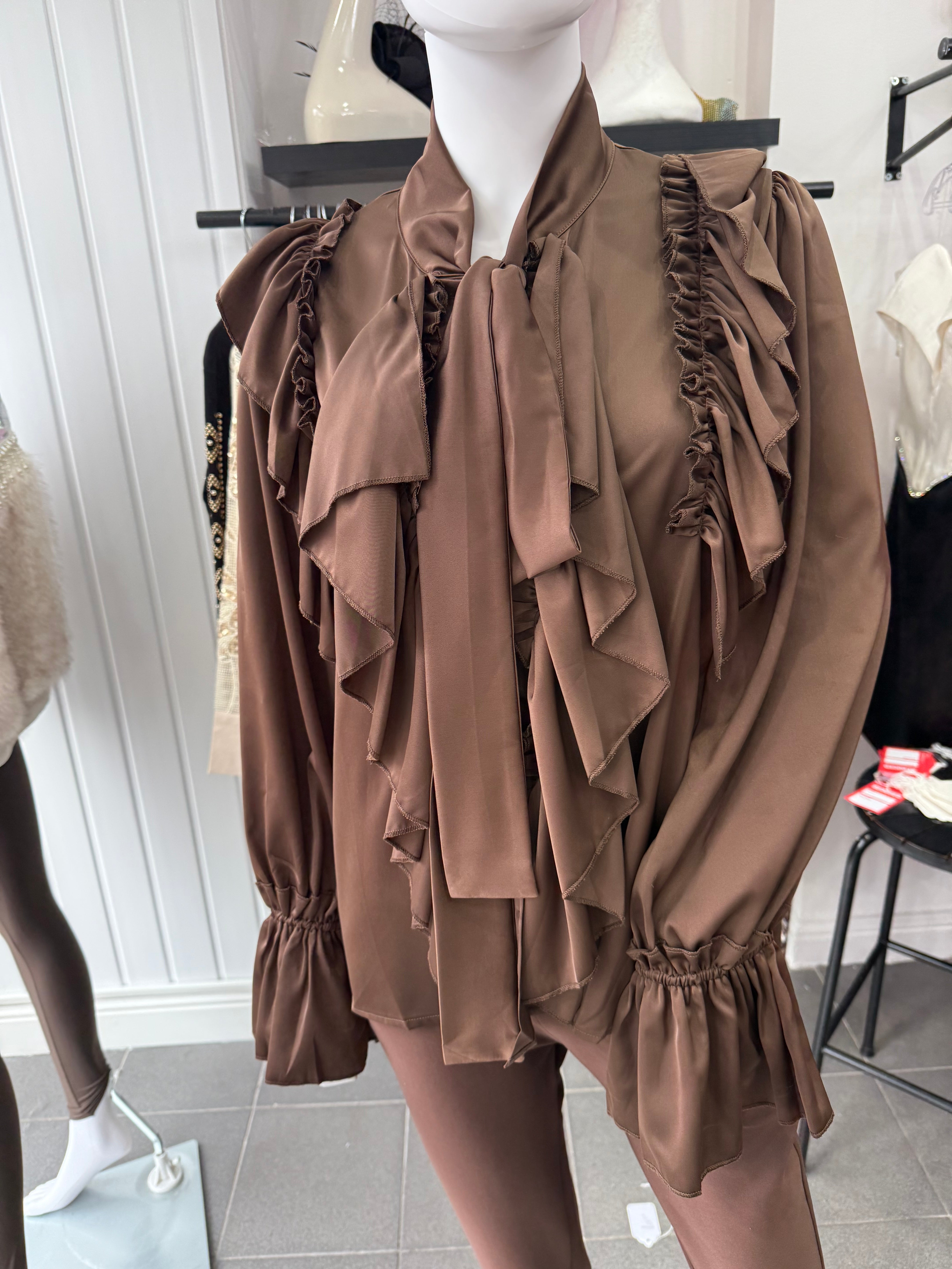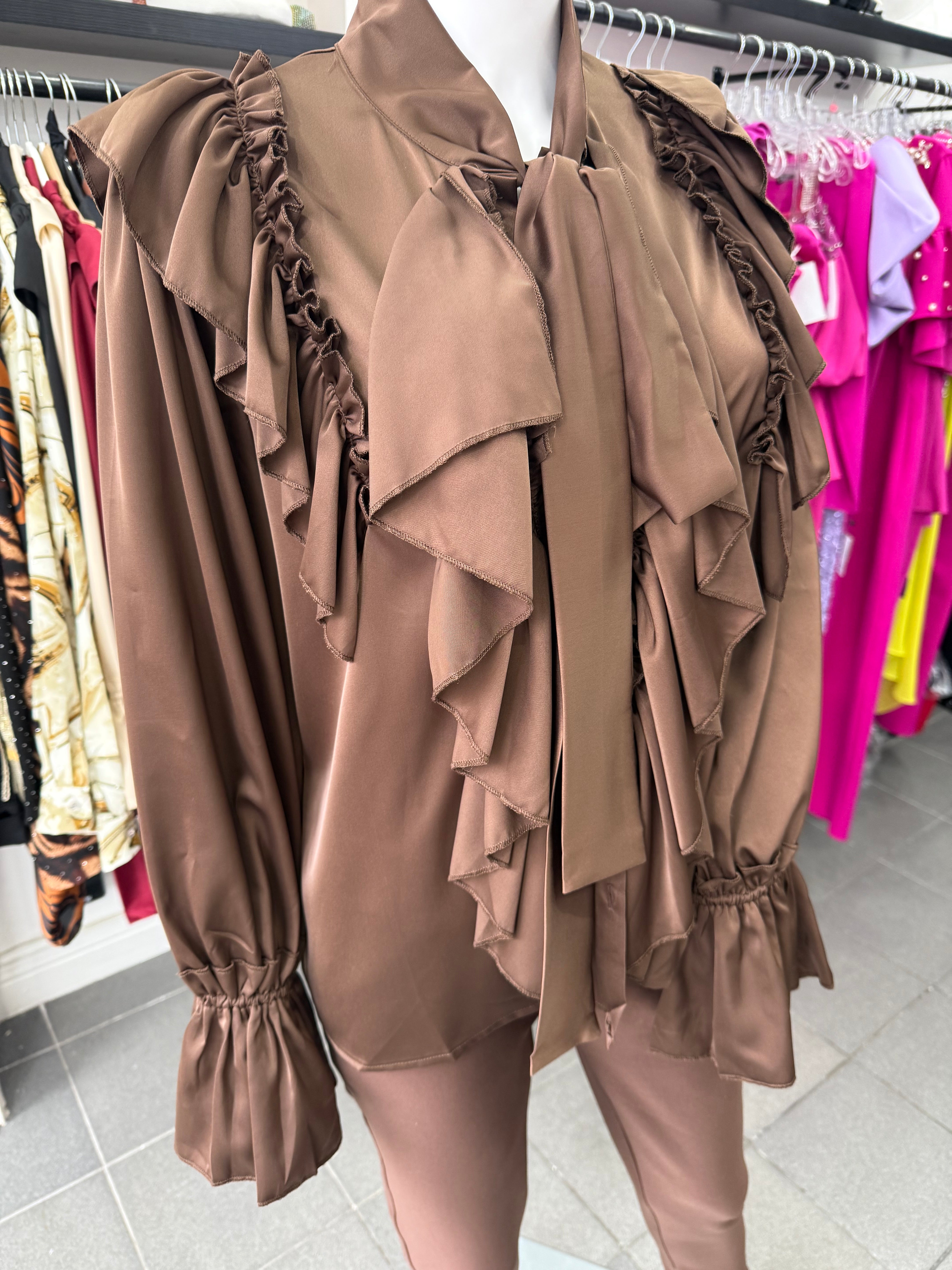 Elevate your wardrobe with this Chocolate Ruffle Shirt, designed to combine classic elegance with subtle detailing. Crafted in a rich burgundy hue, it features delicate ruffles that add texture and movement, making it an ideal choice for both professional settings and stylish evenings. The tailored fit ensures a flattering silhouette, while the high-quality fabric offers comfort and durability. Perfect for layering or wearing alone, this shirt effortlessly enhances your outfit with refined sophistication.