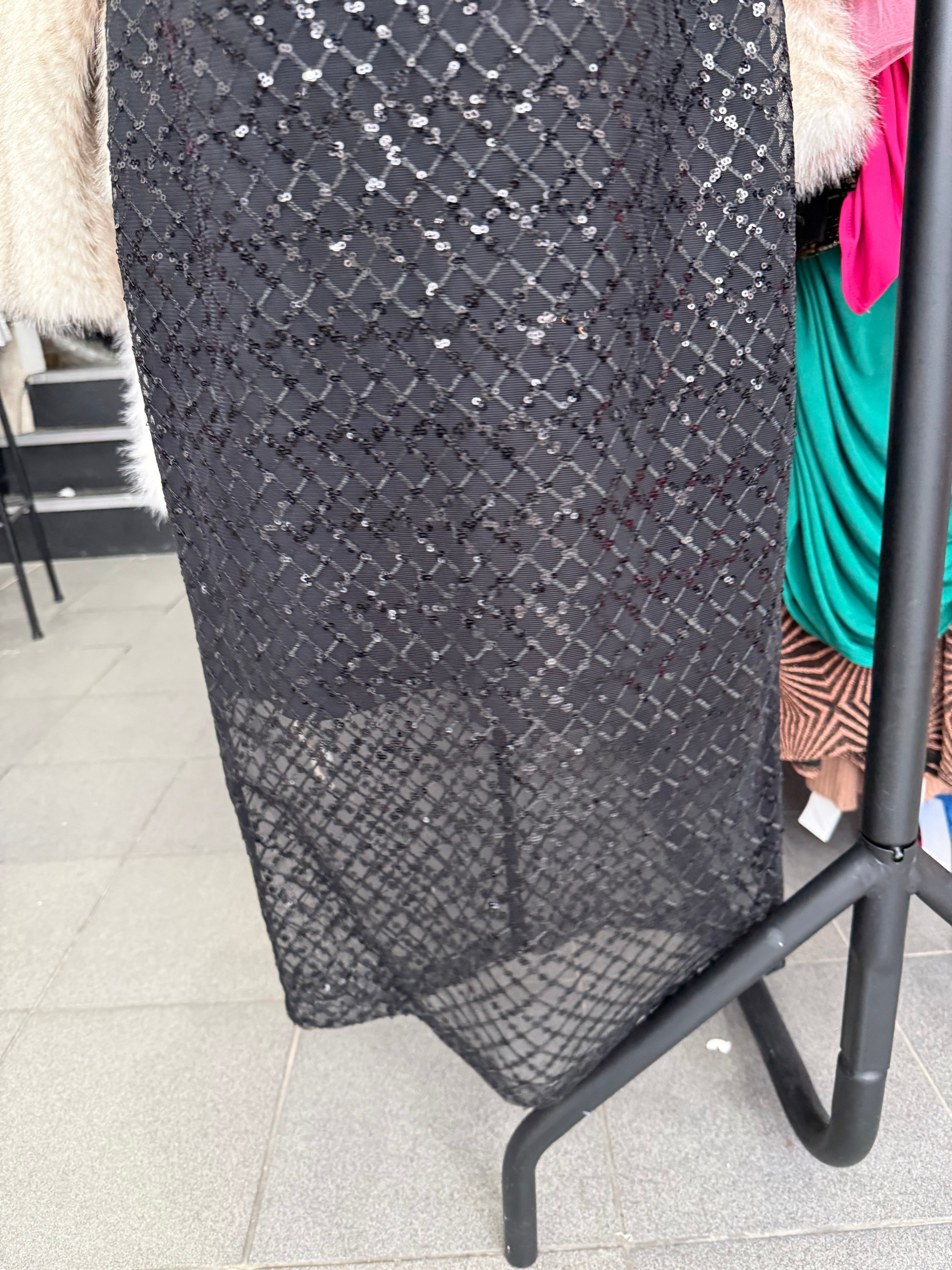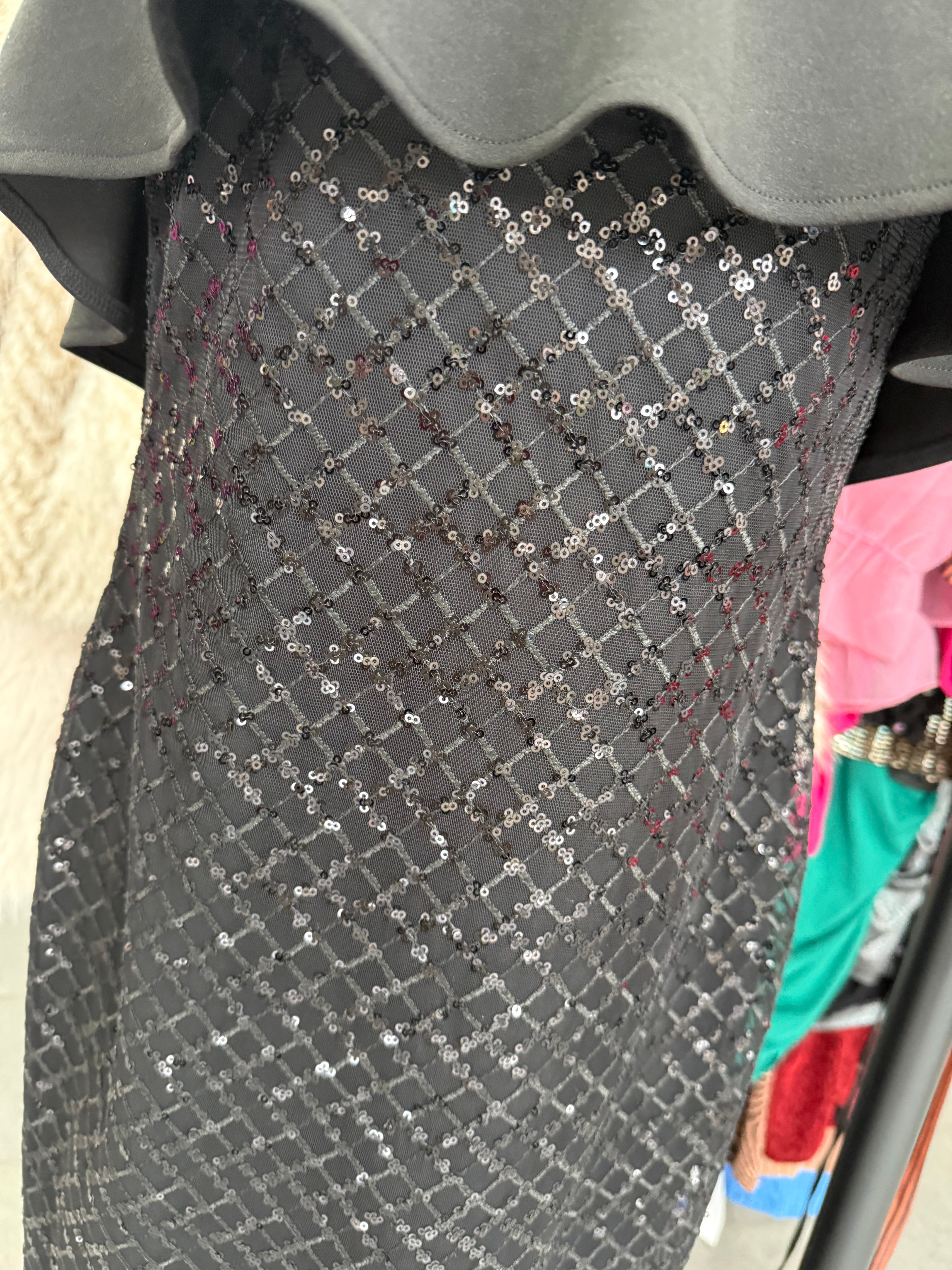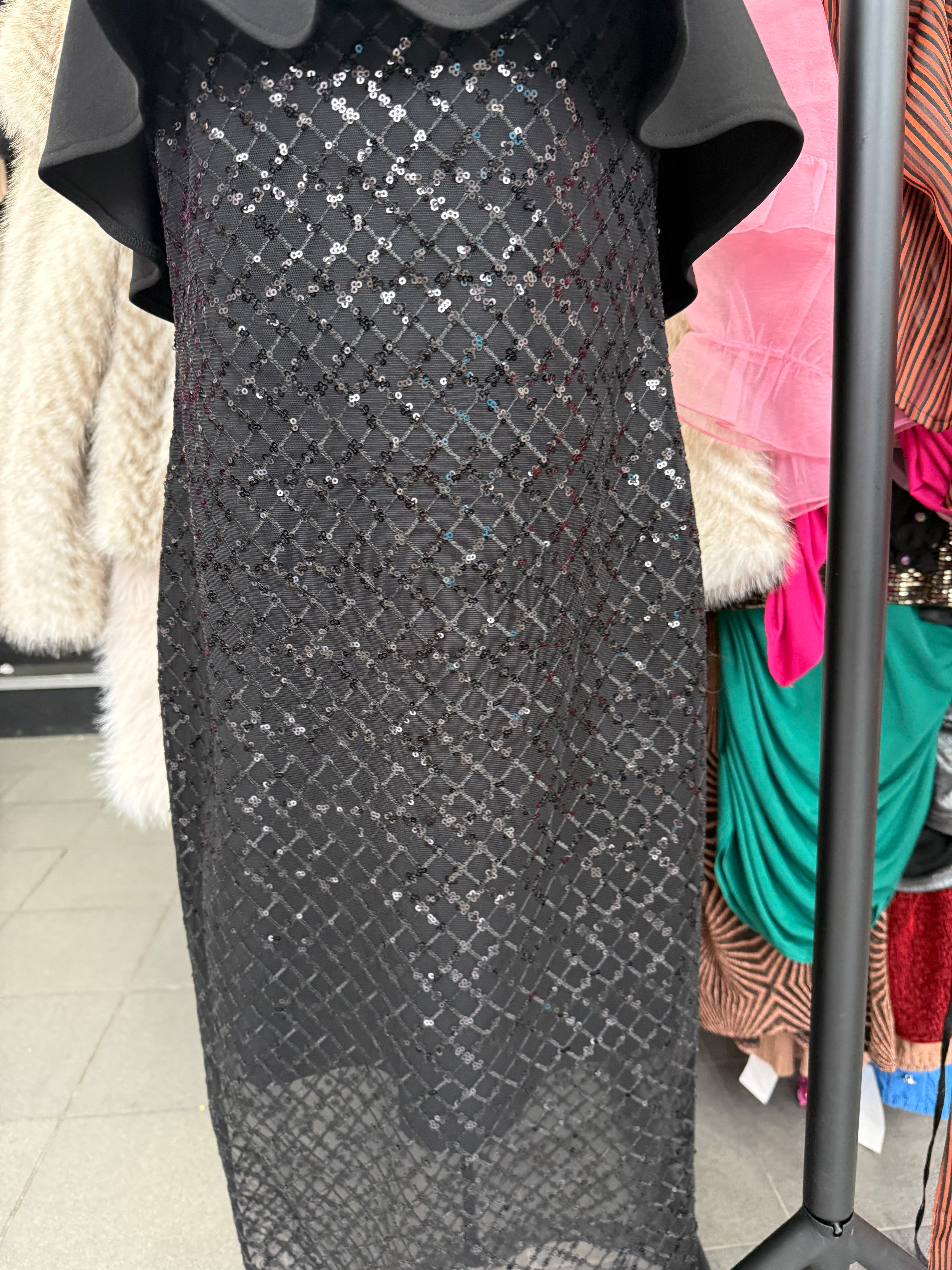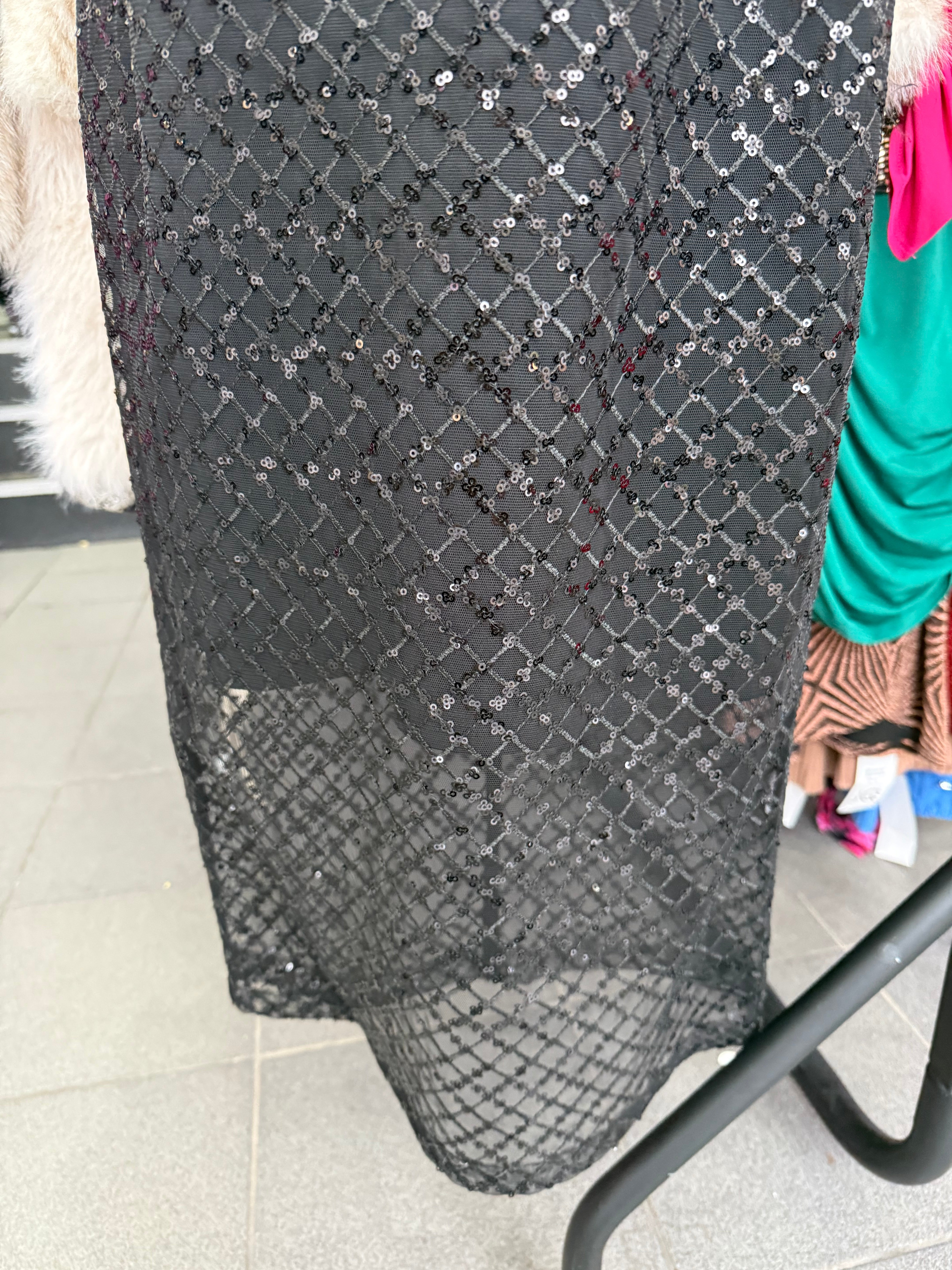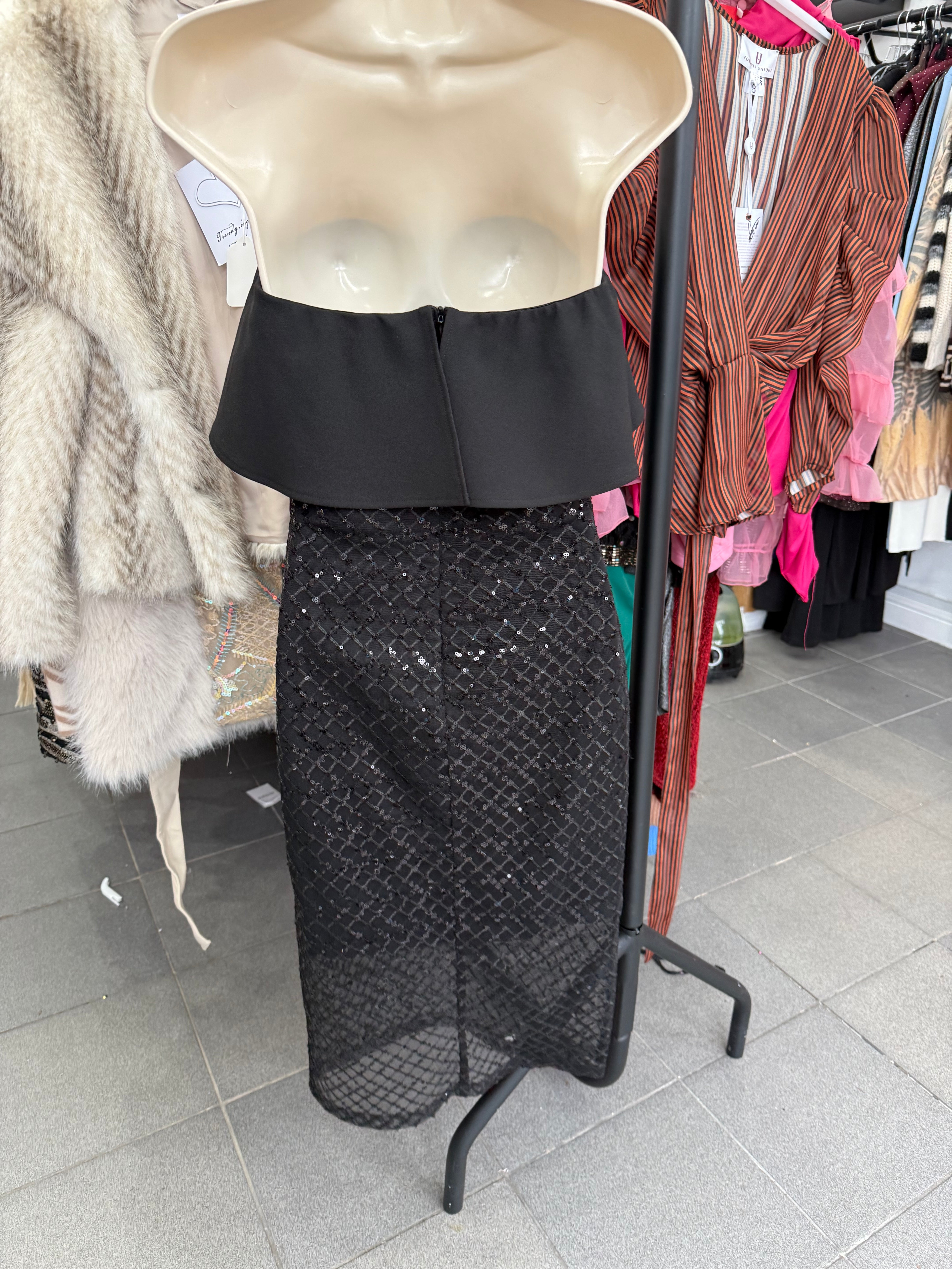 Forever Unique Black Sequin Frill Midi Dress