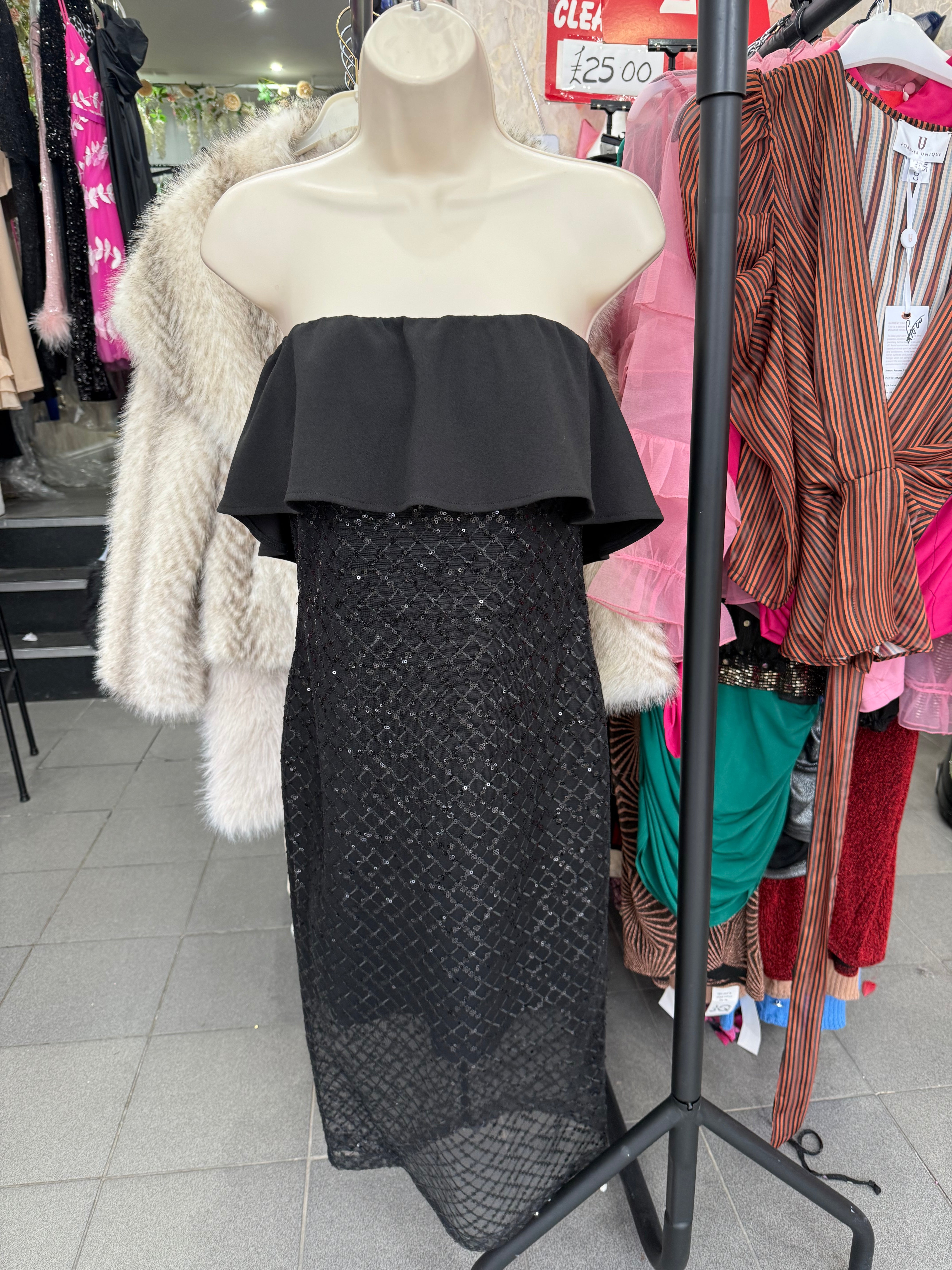 Add a touch of glamour to your wardrobe with the Forever Unique Black Sequin Frill Midi Dress. Featuring a stylish midi length and delicate sequin detailing, this dress is perfect for any special occasion. Its frill design adds a playful touch while highlighting your curves. Elevate your style with this must-have dress.