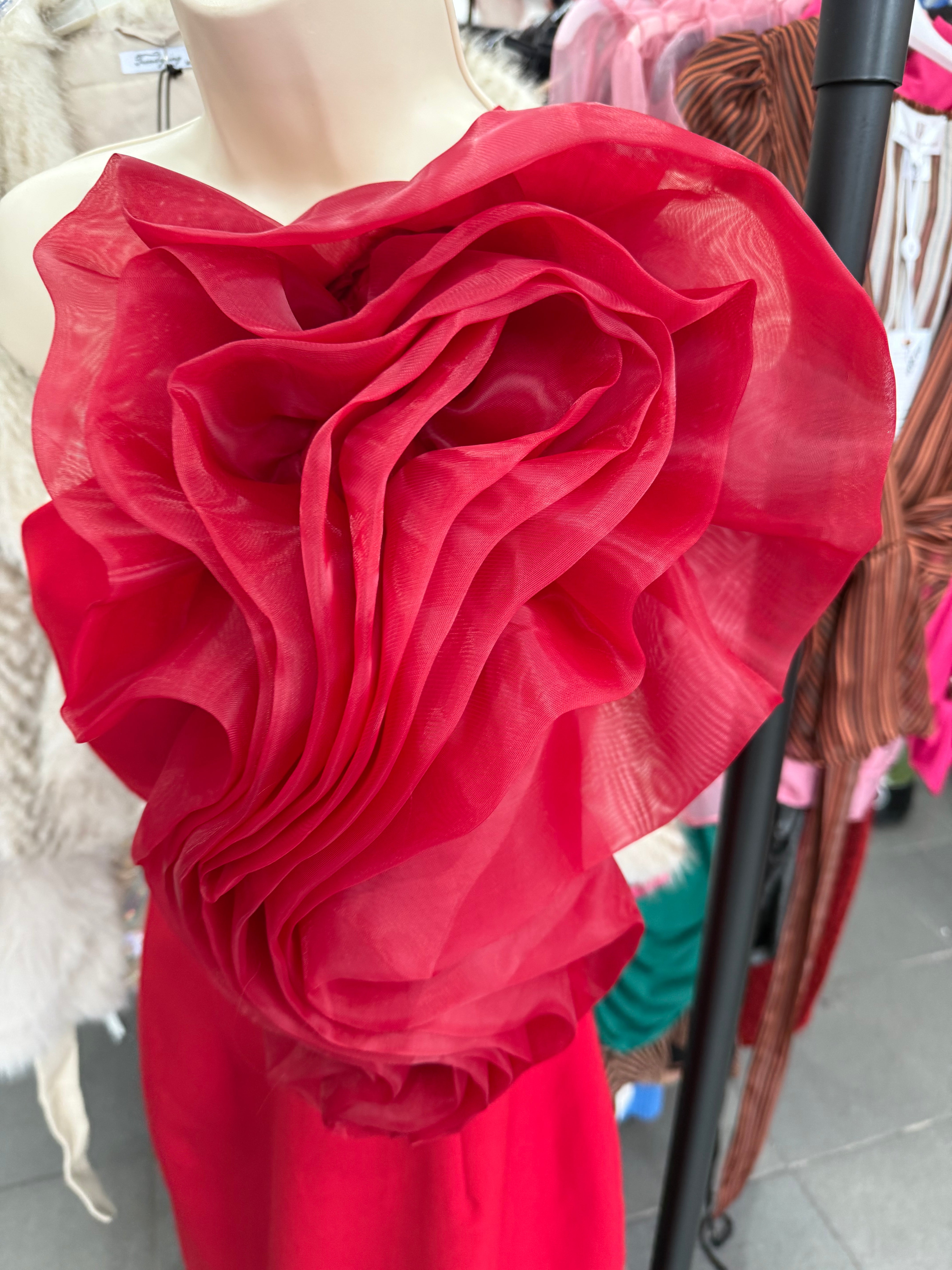 Forever Unique - Red Rose Organza Midi Dress
