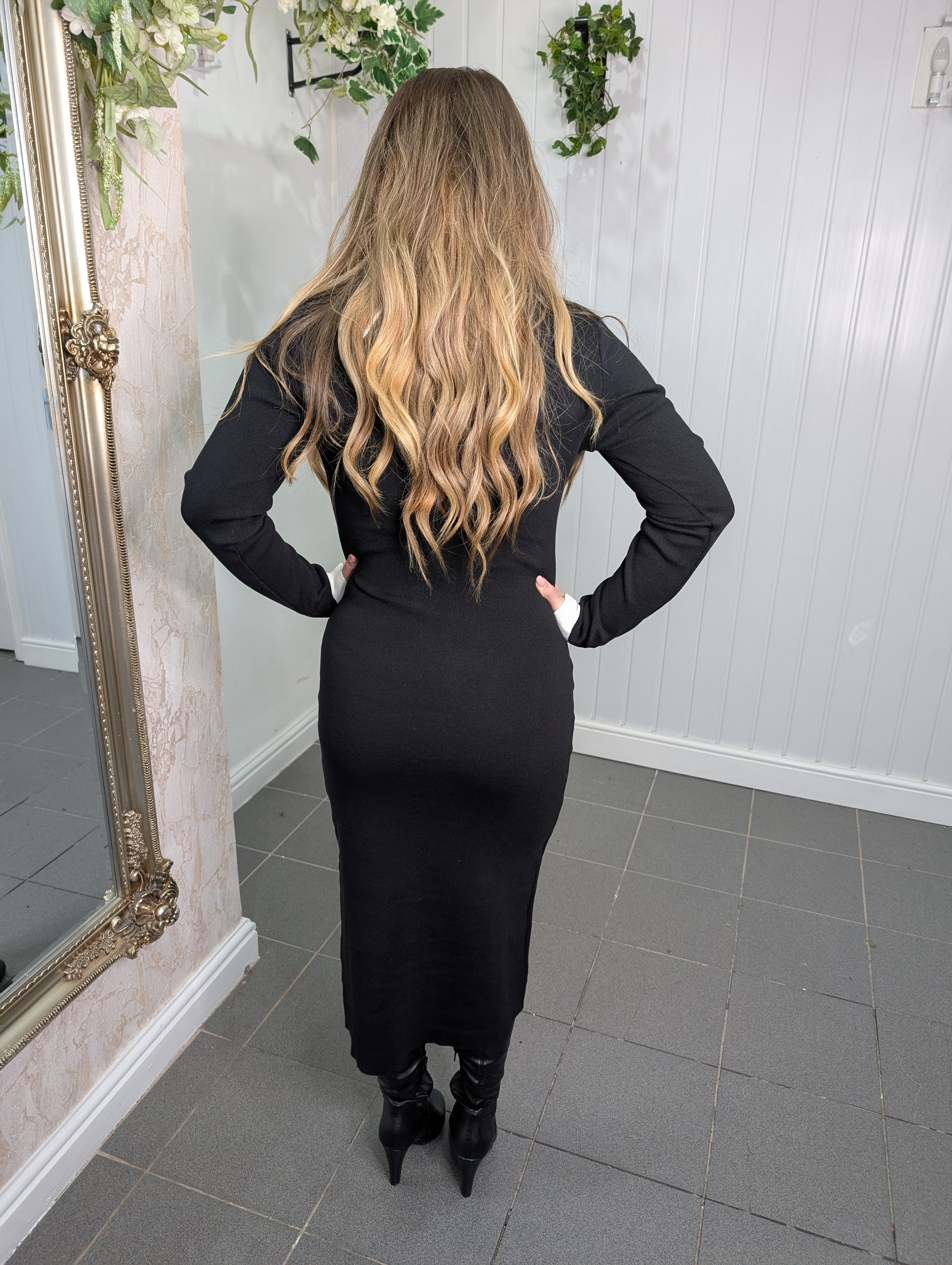 Elevate your everyday wardrobe with this sophisticated black and cream button knitted dress. Crafted from quality knit fabric, this piece seamlessly transitions from office to evening with its timeless colour-block design. The functional button front adds both visual interest and practical styling versatility, allowing you to adjust the fit to your preference. The classic silhouette flatters various body types whilst the neutral palette pairs effortlessly with your existing accessories. A refined choice for those who appreciate understated elegance and enduring style.