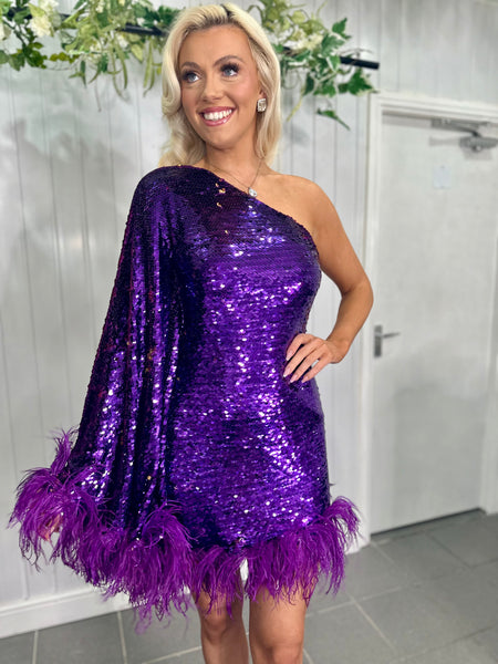 Diamond For Eden Purple Feather Sequin Mini Dress