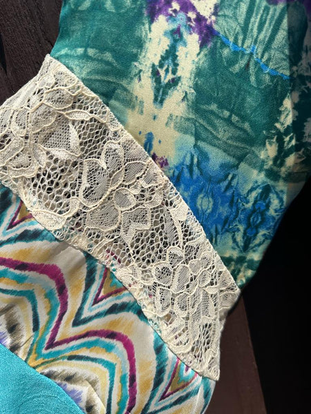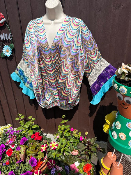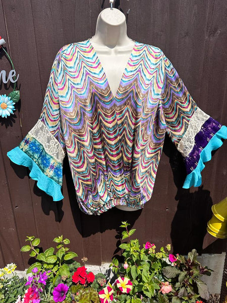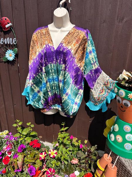Briefly - Multicoloured Tie Dye Patterned Frill Sleeve Top
