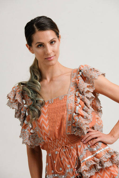 Briefly - Multicoloured Patterned Frill Sleeve Top