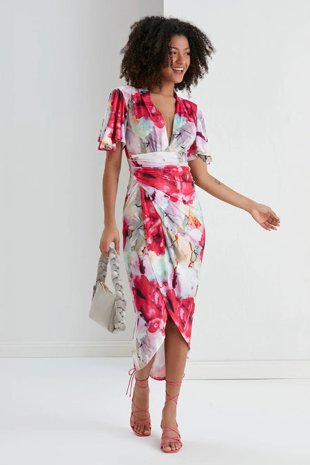 Diamond for Eden - Pink Embellished Flower Hi Low Dress