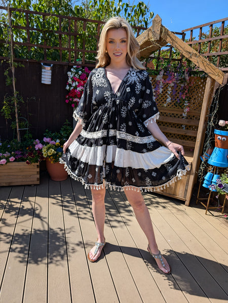 Diamond For Eden - Black and White Embellished Beaded Dress