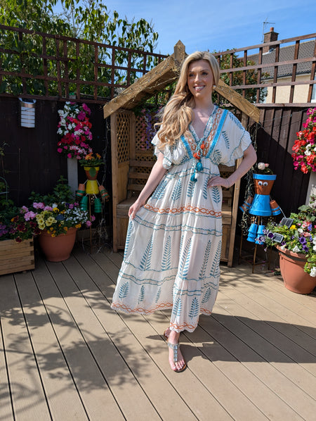 Diamond for Eden - White Embellished Flower Hi Low Dress