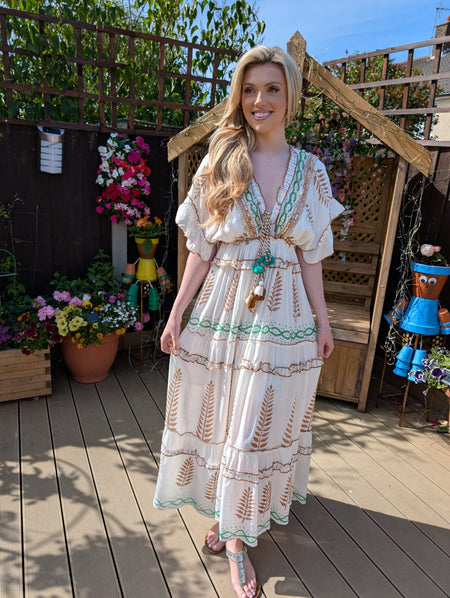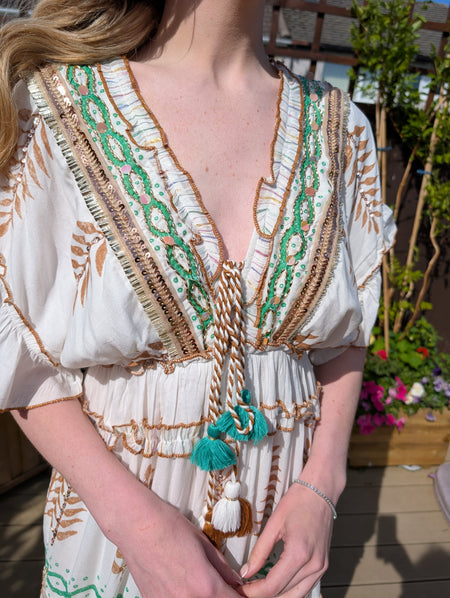 Diamond For Eden - Pink & Beige Embellished Beaded Dress