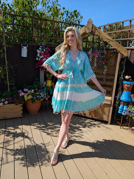 Diamond for Eden - Mint Green Embellished Flower Hi Low Dress