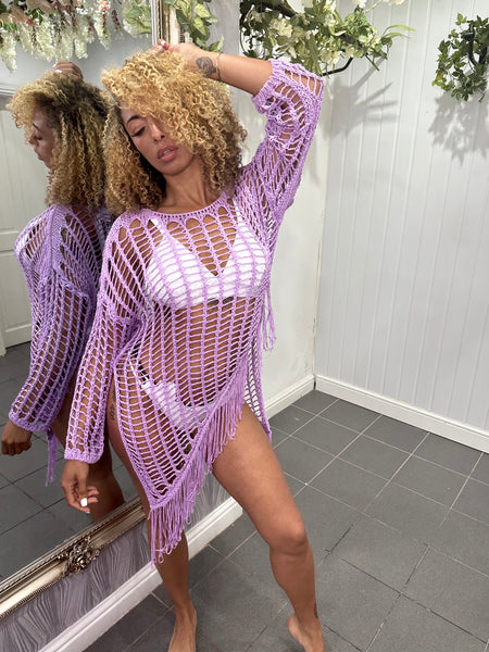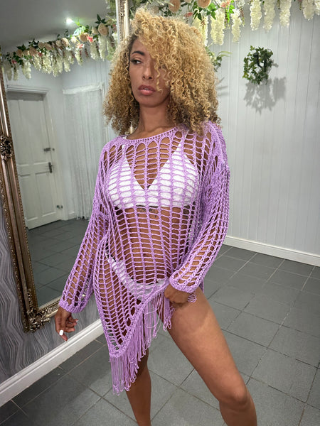 Lilac Crochet Asymmetrical Tassel Top