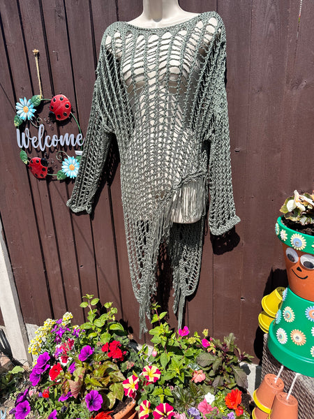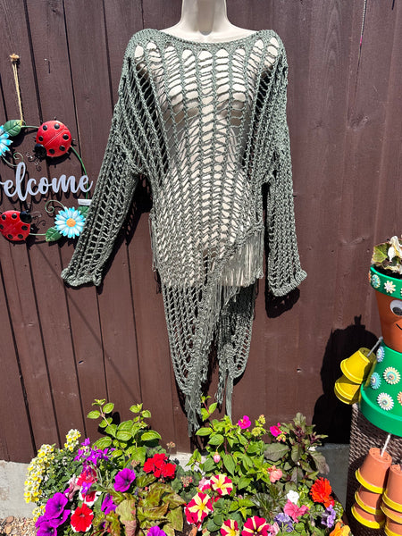 Green Crochet Asymmetrical Tassel Top