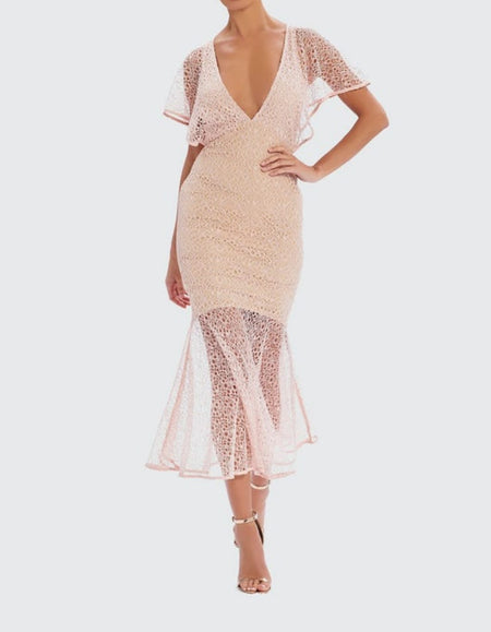 Forever Unique - pink Lace Midi Dress With Short Insert