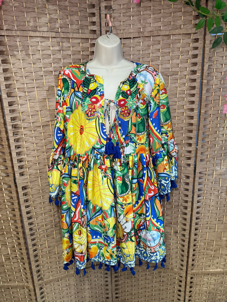 Diamond For Eden - Blue & Gold Metallic Mini Dress