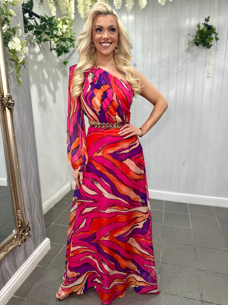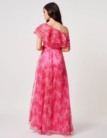 Forever Unique - Fuchsia One Shoulder Floral Maxi Dress