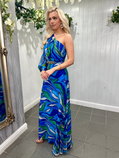 Blue One Shoulder Cut Out Maxi Dress