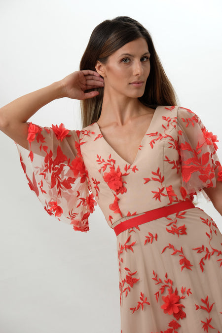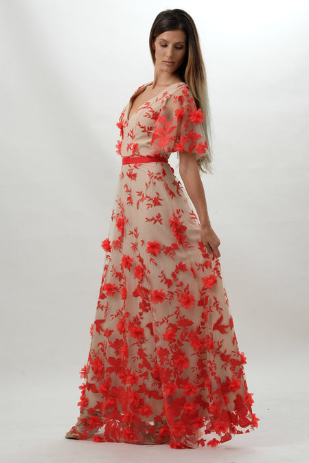 Forever Unique - Limited Edition - Coral Embellished Flower Maxi Dress