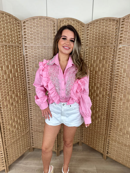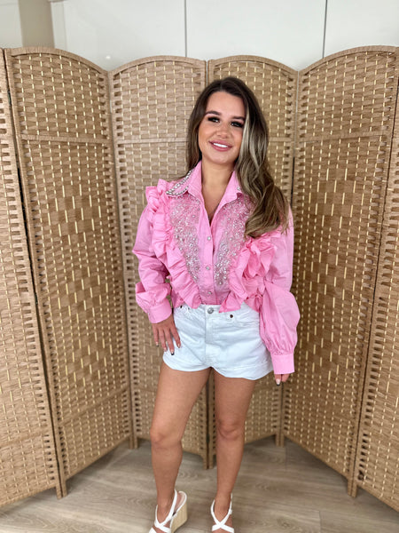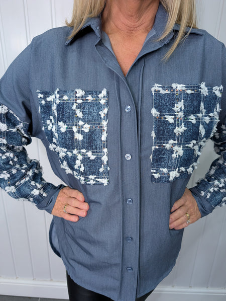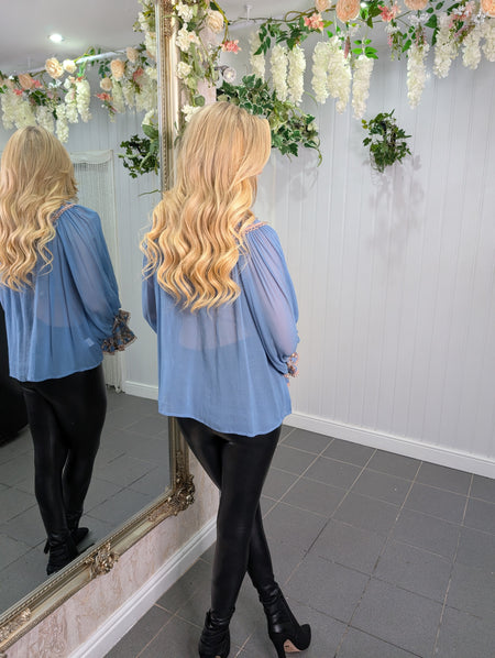 Diamond for Eden - Blue long Sleeve Embellished Top
