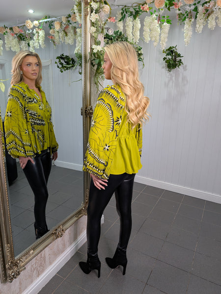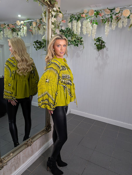 Diamond for Eden - Lime Green/ Black beaded long Sleeve Embellished Top