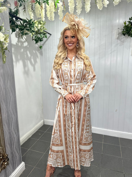 Ivory and Gold Baroque Midi Dress with Detachable Belt