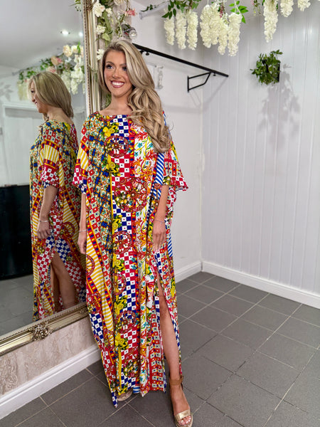 Add some pop of color to your wardrobe with our Red Multicoloured Kaftan Dress. This versatile and stylish dress features a vibrant mix of colors...