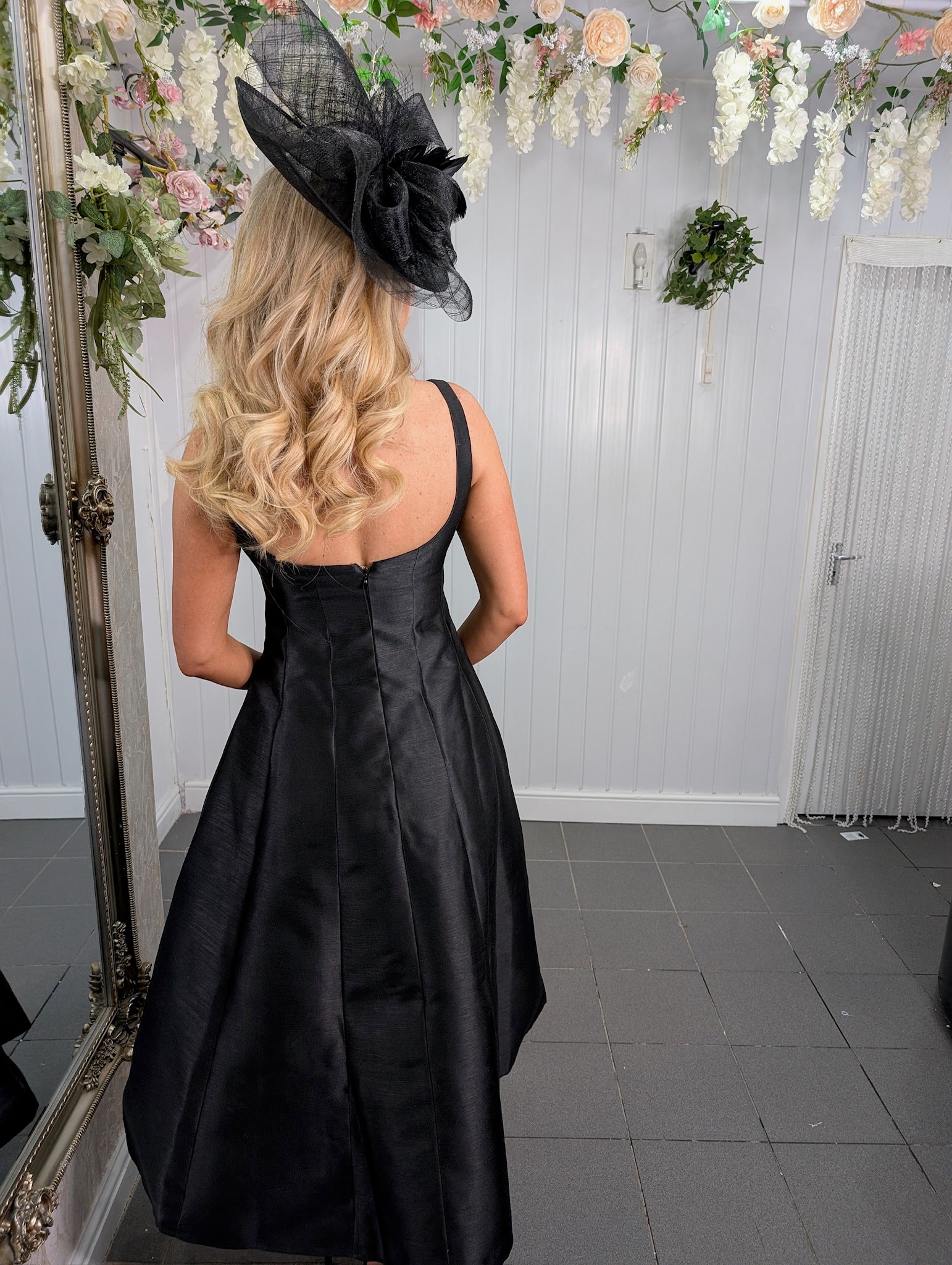 Black/Cream Silver Trim Hi Low Dress