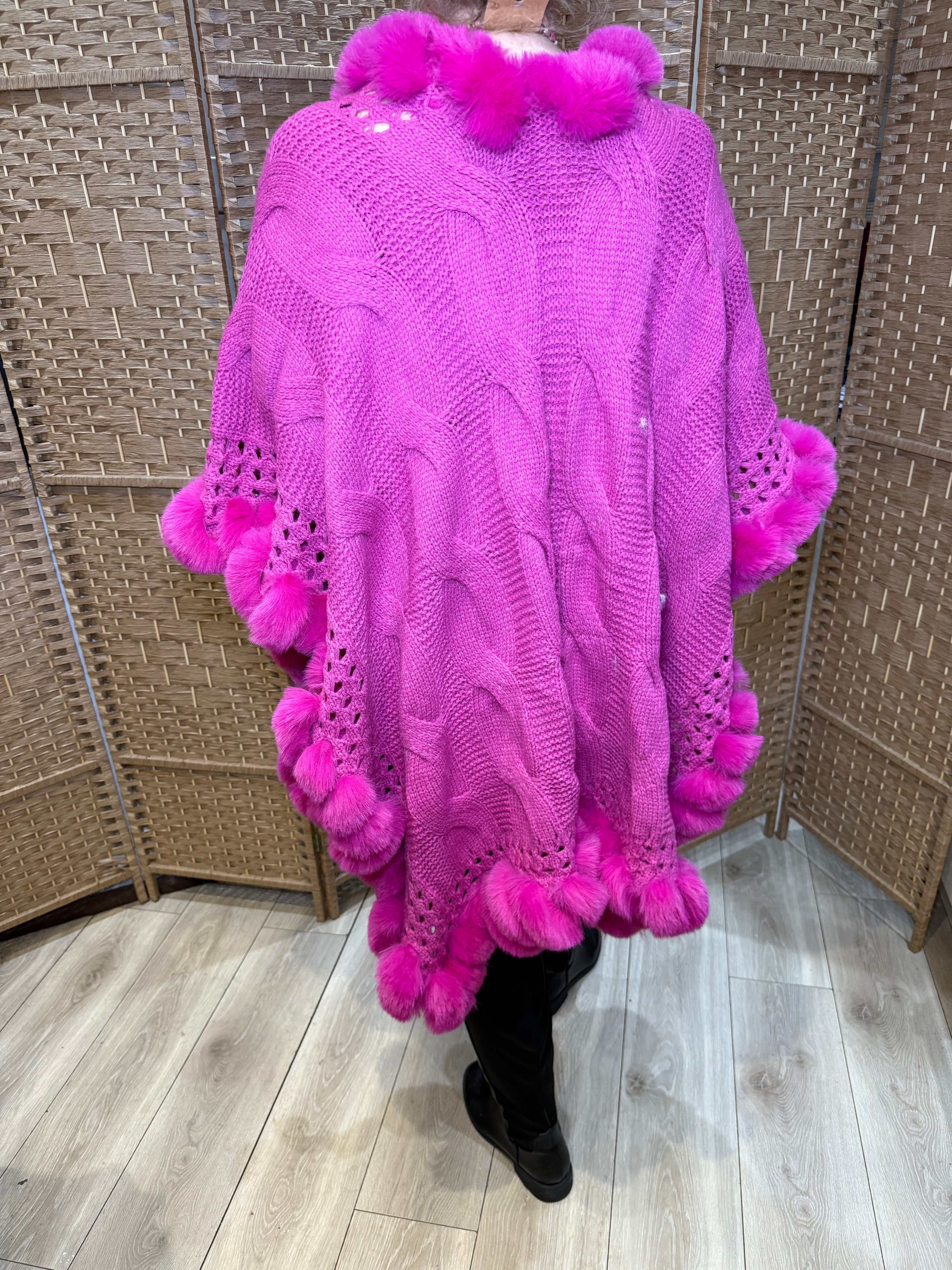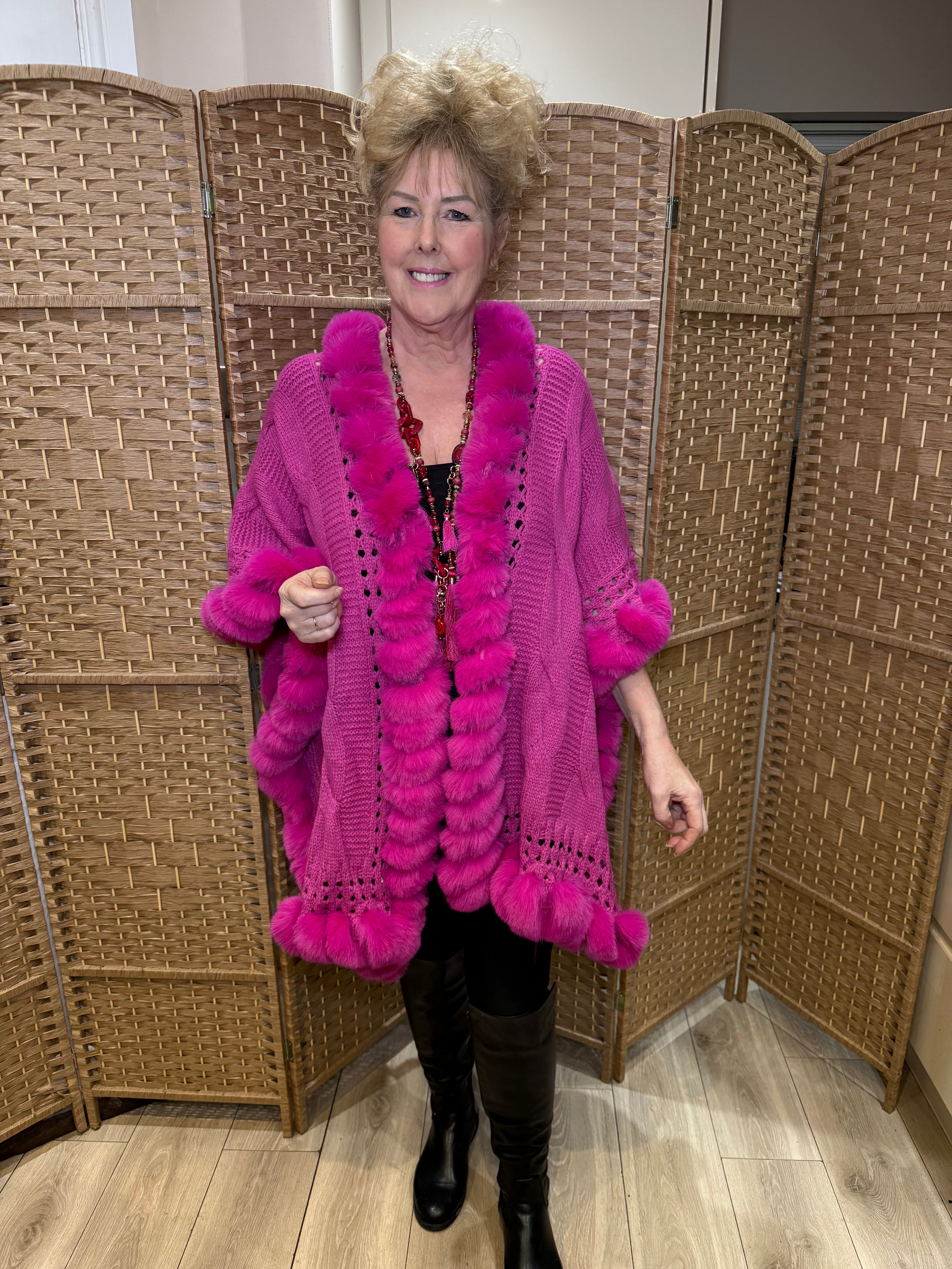 This Fuchsia Knit Faux Fur Cape combines fashion and comfort, providing a stylish layer for any outfit. The soft faux fur adds a touch of luxury, while the knit material keeps you warm and cozy. Perfect for any occasion, this cape adds a pop of color and texture to your wardrobe.