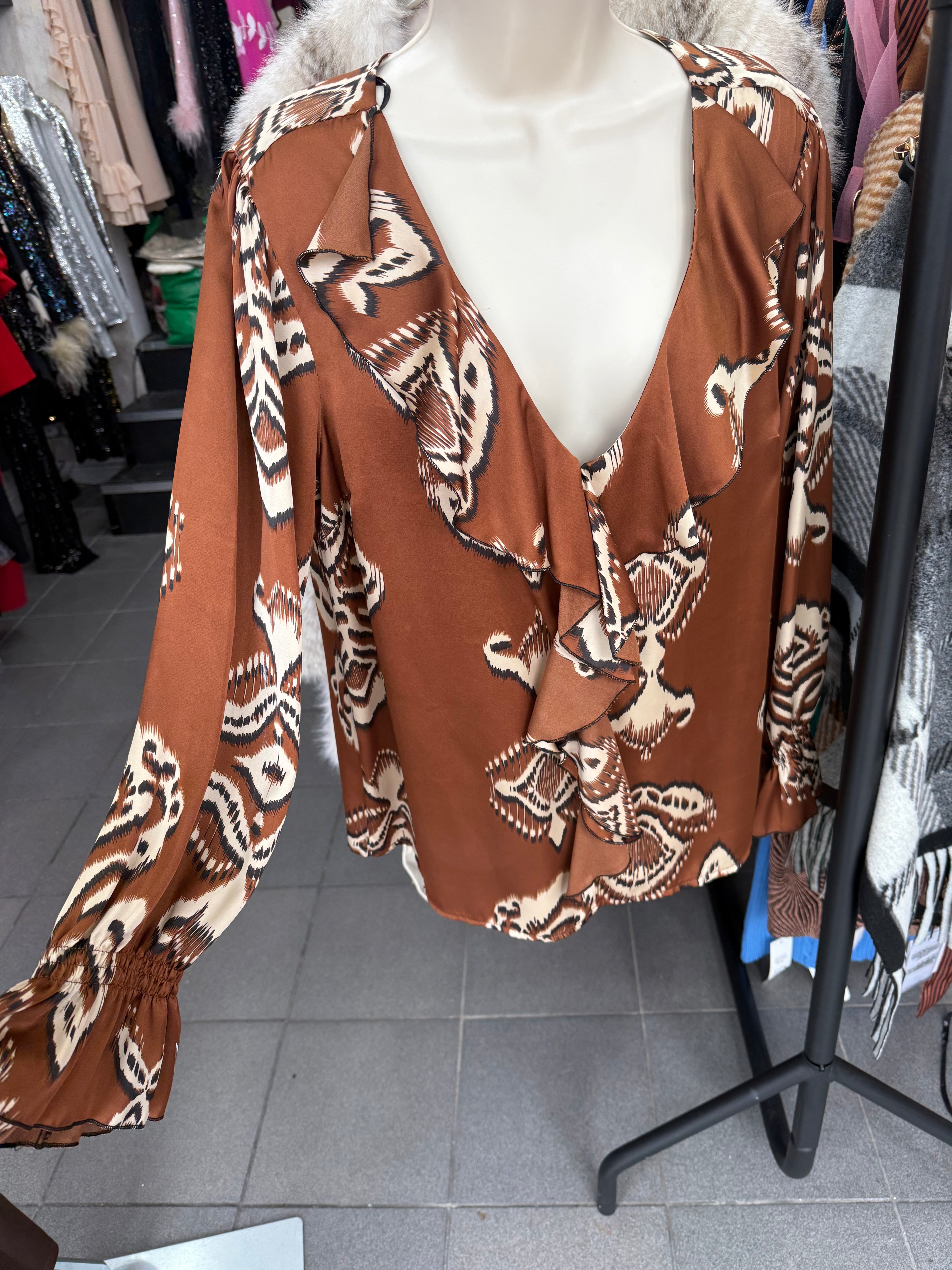 Jeff Gallano - Brown And Cream Satin Frill Top