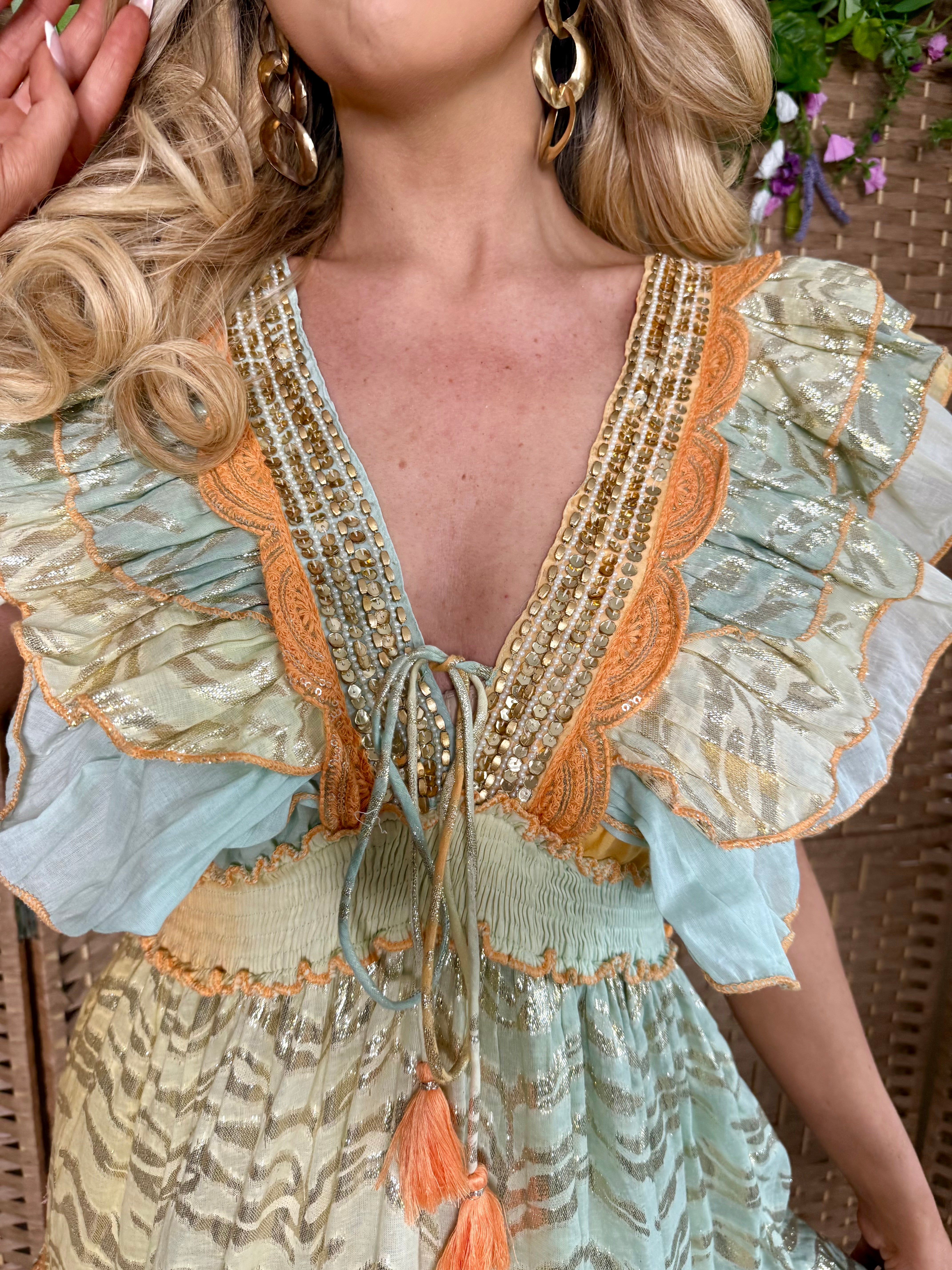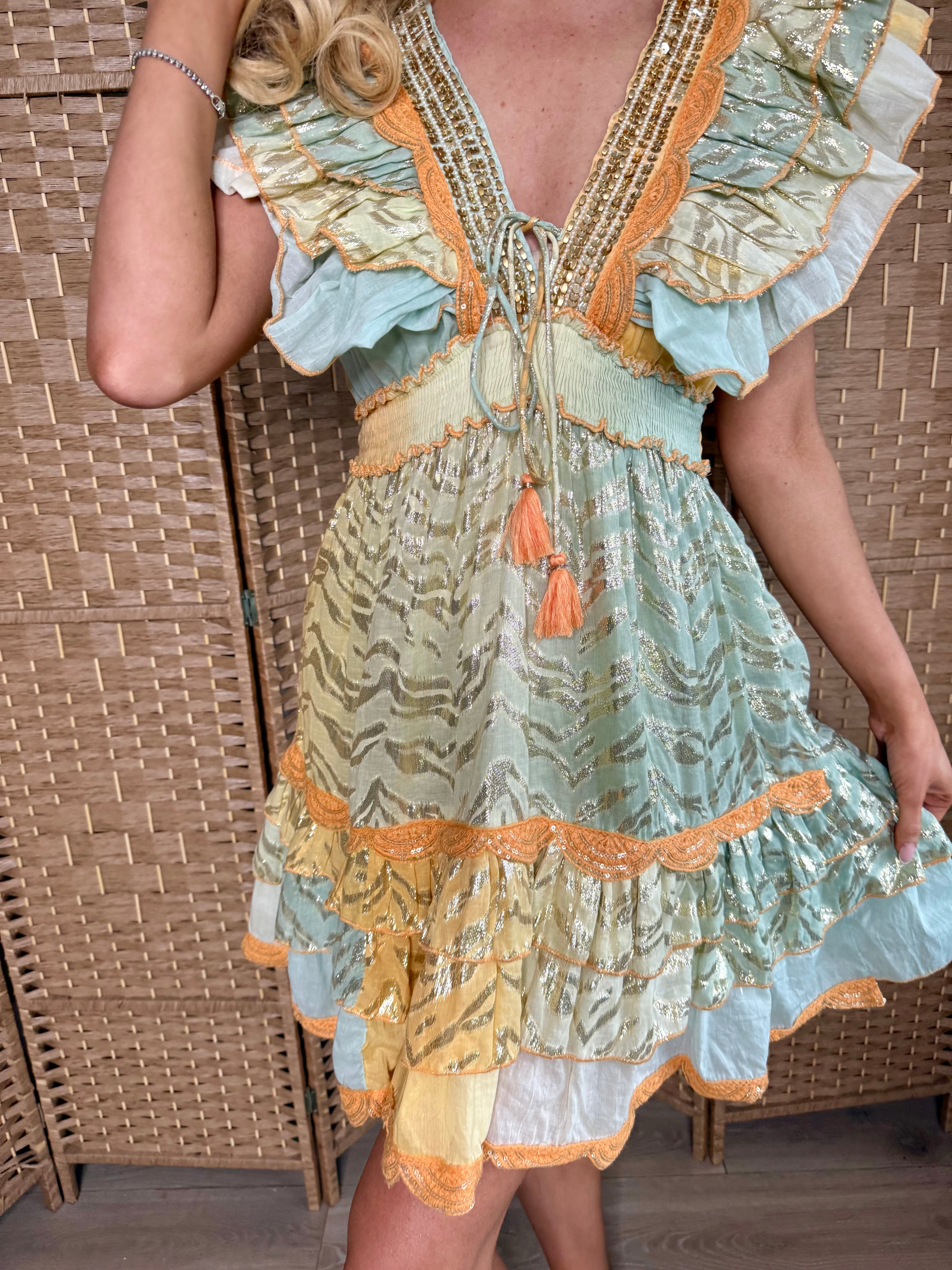 Orange/Yellow Foil Beaded Mini Dress